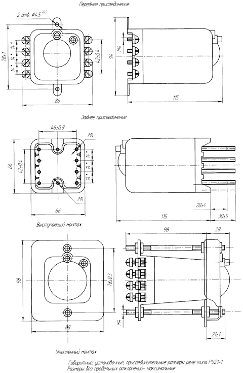 Перестановкой контактных мостиков возможно получение реле РУ21 и РУ21-1 с размыкающими контактами.